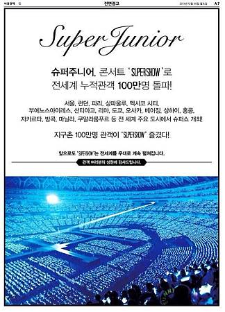 翻譯(音悅Tai-SJ飯團): :^) (圖片内容:Super Junior, 以演唱會'SUPERSHOW' 全世界累計觀眾突破100萬名!)