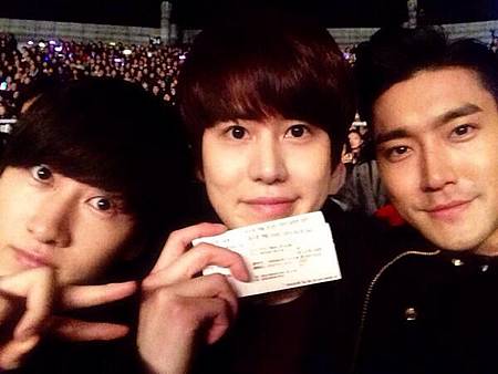 翻譯(唯愛SJ13): 2013年僅剩的2天三個男人在觀看成時京哥的公演... 真的很溫暖. 哈哈哈哈哈哈哈哈哈哈哈哈哈哈哈哈哈哈哈哈...